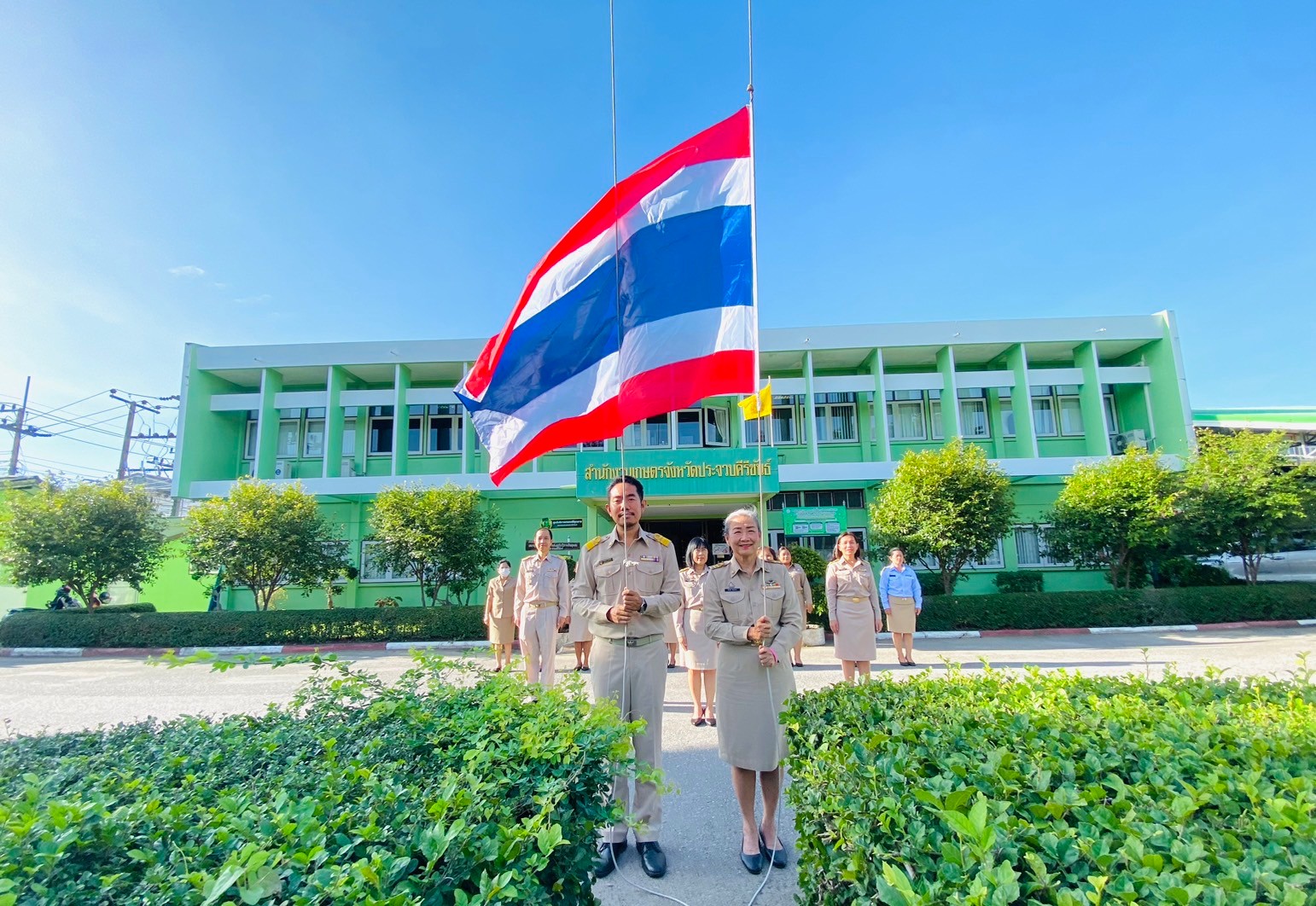 วันพระราชทานธงชาติไทย (Thai National Flag Day) ประจำปี 2567 วันที่ 30 กันยายน 2567 นางศันสนีย์ เกษตรสินสมบัติ เกษตรจังหวัดประจวบคีรีขันธ์ พร้อมด้วยข้าราชการ และเจ้าหน้าที่สำนักงานเกษตรจังหวัดประจวบคีรีขันธ์ ร่วมกิจกรรมเคารพธงชาติไทยและร้องเพลงชาติไทย เนื่องในวันพระราชทานธงชาติไทย (Thai National Flag Day) ประจำปี 2567 ณ บริเวณหน้าเสาธง สำนักงานเกษตรจังหวัดประจวบคีรีขันธ์ ทั้งนี้ วันที่ 28 กันยายน ของทุกปี ถือเป็นอีกวันสำคัญของประเทศไทย เป็นวันพระราชทานธงชาติไทย ซึ่งธงชาติถือเป็นสัญลักษณ์อันสูงสุดของชาติ และเดิมมีหลายรูปแบบ จนรัชสมัยพระบาทสมเด็จพระมงกุฎเกล้าเจ้าอยู่หัว รัชกาลที่ 6 ทรงพระกรุณาโปรดเกล้าโปรดกระหม่อม ให้ตราพระราชบัญญัติธงขึ้นใหม่ในพุทธศักราช 2460 และพระองค์ทรงกำหนดความหมายของ สีธงชาติไว้ว่า สีแดง หมายถึง ชาติ คือประชาชน สีขาว หมายถึง ศาสนา และ สีน้ำเงิน หมายถึง พระมหากษัตริย์ ซึ่งธงไตรรงค์ หรือธงชาติไทย ถือเป็นสัญลักษณ์อันสูงสุดของชาติ เป็นสิ่งเตือนใจให้อนุชนได้รำลึกถึงการเสียสละเลือดเนื้อของบรรพบุรุษ เพื่อรักษาไว้ซึ่งแผ่นดิน และร้อยดวงใจคนทั้งชาติให้เป็นหนึ่ง หล่อหลอมความรักสามัคคี สร้างเสริมความภูมิใจในความเป็นชาติ ก่อเกิดเป็นพลังยิ่งใหญ่ในการพัฒนาชาติไทย Posted on 02/10/2567 | by prachuapWP | Leave a Comment on วันพระราชทานธงชาติไทย (Thai National Flag Day) ประจำปี 2567 วันที่ 30 กันยายน 2567 นางศันสนีย์ เกษตรสินสมบัติ เกษตรจังหวัดประจวบคีรีขันธ์ พร้อมด้วยข้าราชการ และเจ้าหน้าที่สำนักงานเกษตรจังหวัดประจวบคีรีขันธ์ ร่วมกิจกรรมเคารพธงชาติไทยและร้องเพลงชาติไทย เนื่องในวันพระราชทานธงชาติไทย (Thai National Flag Day) ประจำปี 2567 ณ บริเวณหน้าเสาธง สำนักงานเกษตรจังหวัดประจวบคีรีขันธ์ ทั้งนี้ วันที่ 28 กันยายน ของทุกปี ถือเป็นอีกวันสำคัญของประเทศไทย เป็นวันพระราชทานธงชาติไทย ซึ่งธงชาติถือเป็นสัญลักษณ์อันสูงสุดของชาติ และเดิมมีหลายรูปแบบ จนรัชสมัยพระบาทสมเด็จพระมงกุฎเกล้าเจ้าอยู่หัว รัชกาลที่ 6 ทรงพระกรุณาโปรดเกล้าโปรดกระหม่อม ให้ตราพระราชบัญญัติธงขึ้นใหม่ในพุทธศักราช 2460 และพระองค์ทรงกำหนดความหมายของ สีธงชาติไว้ว่า สีแดง หมายถึง ชาติ คือประชาชน สีขาว หมายถึง ศาสนา และ สีน้ำเงิน หมายถึง พระมหากษัตริย์ ซึ่งธงไตรรงค์ หรือธงชาติไทย ถือเป็นสัญลักษณ์อันสูงสุดของชาติ เป็นสิ่งเตือนใจให้อนุชนได้รำลึกถึงการเสียสละเลือดเนื้อของบรรพบุรุษ เพื่อรักษาไว้ซึ่งแผ่นดิน และร้อยดวงใจคนทั้งชาติให้เป็นหนึ่ง หล่อหลอมความรักสามัคคี สร้างเสริมความภูมิใจในความเป็นชาติ ก่อเกิดเป็นพลังยิ่งใ