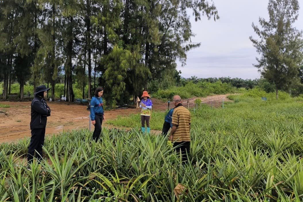 วันที่ 11 ตุลาคม 2567 นางศันสนีย์ เกษตรสินสมบัติ เกษตรจังหวัดประจวบคีรีขันธ์ มอบหมายให้นางสาวเพียงใจ น้อยดี หัวหน้ากลุ่มส่งเสริมและพัฒนาการผลิต พร้อมด้วยเจ้าหน้าที่และสำนักงานเกษตรอำเภอเมืองประจวบคีรีขันธ์ ติดตามแปลงเรียนรู้ โครงการพัฒนาระบบการผลิต การแปรรูป และการตลาดสินค้าเกษตร กิจกรรมเพิ่มประสิทธิภาพและยกระดับการผลิตสับปะรด จังหวัดประจวบคีรีขันธ์ ในการต่อยอดทดสอบเทคโนโลยีการขยายหน่อพันธุ์สับปะรดสยามโกลด์ประจวบคีรีขันธ์ พันธุ์ MD2 ด้วยวิธีการตัดช่อดอกอ่อน ให้คำแนะนำการทดสอบการขยายหน่อพันธุ์ด้วยวิธีการชำเหง้า 💡เพื่อการเพิ่มจำนวนหน่อพันธุ์ อีกทั้งเป็นการใช้ประโยชน์จากต้นสับปะรดที่ให้ผลผลิตแล้วได้อย่างคุ้มค่า ณ แปลงสับปะรดผลสด นายปราโมทย์ เดชประสาท หมู่ 9 ตำบลบ่อนอก อำเภอเมืองฯ จังหวัดประจวบคีรีขันธ์ Posted on 15/10/2567 | by prachuapWP | Leave a Comment on วันที่ 11 ตุลาคม 2567 นางศันสนีย์ เกษตรสินสมบัติ เกษตรจังหวัดประจวบคีรีขันธ์ มอบหมายให้นางสาวเพียงใจ น้อยดี หัวหน้ากลุ่มส่งเสริมและพัฒนาการผลิต พร้อมด้วยเจ้าหน้าที่และสำนักงานเกษตรอำเภอเมืองประจวบคีรีขันธ์ ติดตามแปลงเรียนรู้ โครงการพัฒนาระบบการผลิต การแปรรูป และการตลาดสินค้าเกษตร กิจกรรมเพิ่มประสิทธิภาพและยกระดับการผลิตสับปะรด จังหวัดประจวบคีรีขันธ์ ในการต่อยอดทดสอบเทคโนโลยีการขยายหน่อพันธุ์สับปะรดสยามโกลด์ประจวบคีรีขันธ์ พันธุ์ MD2 ด้วยวิธีการตัดช่อดอกอ่อน ให้คำแนะนำการทดสอบการขยายหน่อพันธุ์ด้วยวิธีการชำเหง้า 💡เพื่อการเพิ่มจำนวนหน่อพันธุ์ อีกทั้งเป็นการใช้ประโยชน์จากต้นสับปะรดที่ให้ผลผลิตแล้วได้อย่างคุ้มค่า ณ แปลงสับปะรดผลสด นายปราโมทย์ เดชประสาท หมู่ 9 ตำบลบ่อนอก อำเภอเมืองฯ จังหวัดประจวบคีรีขันธ์