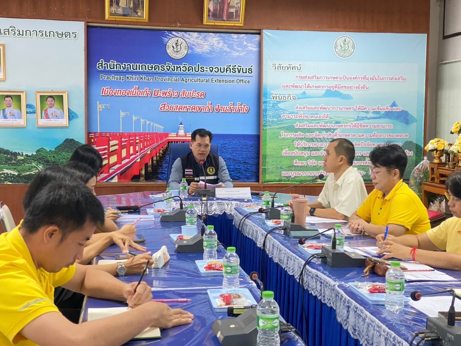 🌳ประชุมเชื่อมโยงการดำเนินงานคณะกรรมการเครือข่ายศูนย์เรียนรู้การเพิ่มประสิทธิภาพการผลิตสินค้าเกษตร (ศพก.) และแปลงใหญ่ ระดับจังหวัด ครั้งที่ 1 🌳 วันที่ 12 ธันวาคม 2567 นางศันสนีย์ เกษตรสินสมบัติ เกษตรจังหวัดประจวบคีรีขันธ์ มอบหมายนางสาวเพียงใจ น้อยดี หัวหน้ากลุ่มส่งเสริมและพัฒนาการผลิต และนางสุภิณยา บัวทอง หัวหน้ากลุ่มยุทธศาสตร์และสารสนเทศ พร้อมด้วยเจ้าหน้าที่สำนักงานเกษตรจังหวัดประจวบคีรีขันธ์ ร่วมกับสำนักงานเกษตรอำเภอปราณบุรี จัดประชุมเชื่อมโยงการดำเนินงานคณะกรรมการเครือข่ายศูนย์เรียนรู้การเพิ่มประสิทธิภาพการผลิตสินค้าเกษตร (ศพก.) และแปลงใหญ่ ระดับจังหวัด ครั้งที่ 1 ณ จุดรวบรวมผลผลิตมะม่วง Fruit Farm ปราณบุรี มะม่วงส่งออก อำเภอปราณบุรี จังหวัดประจวบคีรีขันธ์