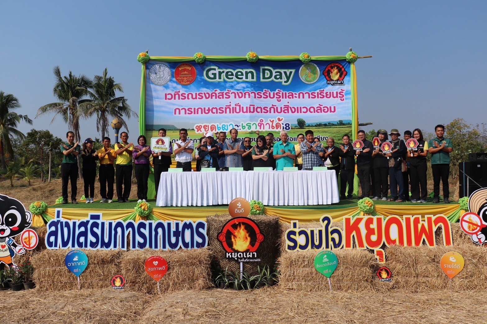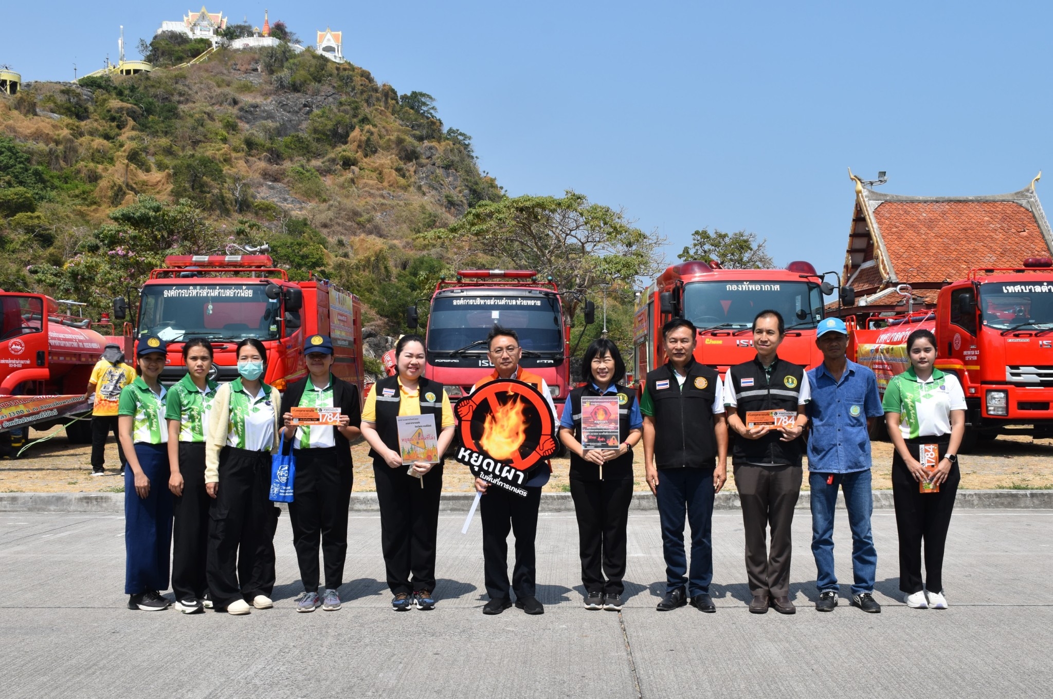 เกษตรประจวบฯ ร่วมรณรงค์ประชาสัมพันธ์ (Kick off) การป้องกันและแก้ไขปัญหาไฟป่า หมอกควัน และฝุ่นละอองขนาดเล็ก (PM2.5) 🗓️ วันที่ 5 กุมภาพันธ์ 2568 🗓️ นายสิทธิชัย สวัสดิ์แสน ผู้ว่าราชการจังหวัดประจวบคีรีขันธ์ เป็นประธานเปิดกิจกรรม “หยุดเผา หยุดฝุ่น เพื่อคุณ เพื่อเรา ชาวเมืองประจวบคีรีขันธ์ ” พร้อมด้วย หัวหน้าส่วนราชการ และประชาชนทุกภาคส่วนร่วมกิจกรรม เพื่อสร้างความตระหนักถึงปัญหาฝุ่นละอองขนาดเล็ก และผลกระทบต่อสุขภาพของประชาชน พร้อมขอความร่วมมือในการแก้ปัญหาอย่างจริงจังด้วยการหยุดการเผาทุกชนิดในที่โล่งแจ้ง จากนั้น ผู้ว่าราชการจังหวัดประจวบคีรีขันธ์ และคณะได้ร่วมกันปล่อยขบวนรถบรรทุกน้ำดับเพลิงไปตามเส้นทางถนนในเขตเทศบาลเมืองประจวบคีรีขันธ์ โดยปฏิบัติการฉีดพ่นละอองน้ำเพื่อลดฝุ่นในอากาศ ซึ่งเป็นวิธีการที่ช่วยลดปริมาณฝุ่นละอองได้อย่างมีประสิทธิภาพ บริเวณสวนสาธารณะเฉลิมพระเกียรติ ร.9 หน้าศาลากลางจังหวัดประจวบคีรีขันธ์