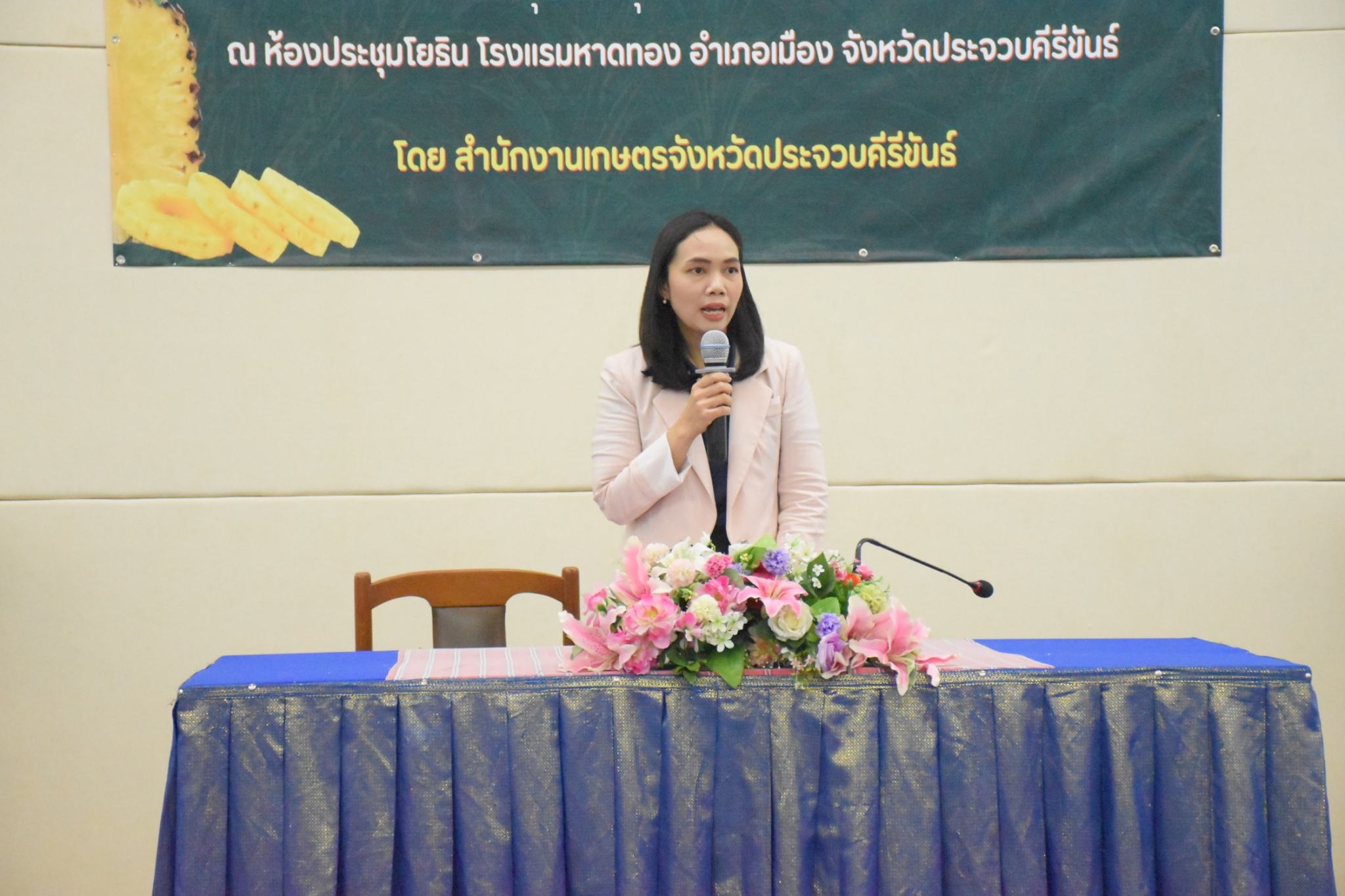เกษตรประจวบฯ จัดประชุมเชิงปฏิบัติการจัดทำแผนพัฒนาสับปะรดจังหวัดประจวบคีรีขันธ์ (พ.ศ. 2568 – 2572) ครั้งที่ 1 วันที่ 5 กุมภาพันธ์ 2568 นางศันสนีย์ เกษตรสินสมบัติ เกษตรจังหวัดประจวบคีรีขันธ์ มอบหมายให้ นางสุภิณยา บัวทอง หัวหน้ากลุ่มยุทธศาสตร์และสารสนเทศ และเจ้าหน้าที่กลุ่มยุทธศาสตร์และสารสนเทศ สำนักงานเกษตรจังหวัดประจวบคีรีขันธ์ จัดประชุมเชิงปฏิบัติการการจัดทำแผนพัฒนาสับปะรดจังหวัดประจวบคีรีขันธ์พ.ศ 2568 – 2572 ครั้งที่ 1 ภายใต้โครงการยกระดับการผลิตการแปรรูปสินค้าเกษตร ด้วยนวัตกรรมสู่ตลาดเศรษฐกิจดิจิทัล โดยมีกลุ่มเป้าหมายประกอบด้วย เจ้าหน้าที่จากสำนักงานเกษตรอำเภอ ทั้ง 8 อำเภอ เจ้าหน้าที่จากสำนักงานเกษตรจังหวัด หน่วยงานภาคีเครือข่ายที่เกี่ยวข้อง และตัวแทนเกษตรกรผู้ปลูกสับปะรดทั้ง 8 อำเภอ เพื่อร่วมกันกำหนดทิศทางและแผนงานโครงการในการขับเคลื่อนแนวทางการพัฒนาสับปะรดของจังหวัดประจวบคีรีขันธ์ให้เป็นไปตามยุทธศาสตร์ การพัฒนาสับปะรดของจังหวัด ณ ห้องประชุมโยธิน โรงแรมหาดทอง อำเภอเมือง จังหวัดประจวบคีรีขันธ์