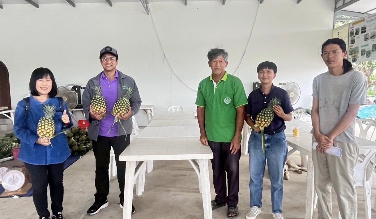 ✨🍍ติดตามการดำเนินงานโครงการทดสอบและถ่ายทอดเทคโนโลยีเพื่อเพิ่มผลิตภาพการผลิตสินค้าเกษตร (สับปะรด)🍍✨ 🗓️วันที่ 11 เมษายน 2568🗓️ นางศันสนีย์ เกษตรสินสมบัติ เกษตรจังหวัดประจวบคีรีขันธ์ พร้อมด้วยเจ้าหน้าที่กลุ่มส่งเสริมและพัฒนาการผลิต และสำนักงานเกษตรอำเภอหัวหิน ลงพื้นที่ร่วมกับ กรมส่งเสริมการเกษตร ในการติดตามการดำเนินงานทดสอบและถ่ายทอดเทคโนโลยีเพื่อเพิ่มผลิตภาพการผลิตสินค้าเกษตร (สับปะรด) ของนายฤทธิชัย ไล้รักษา พร้อมทั้ง ติดตามโครงการส่งเสริมและพัฒนาเพื่อเข้าสู่ห่วงโซ่อุปทานและบริการมูลค่าสูงของกลุ่มผู้ปลูกสับปะรดบ้านตอเกตุ หมู่ 11 ตำบลหินเหล็กไฟ อำเภอหัวหิน จังหวัดประจวบคีรีขันธ์ เพื่อให้คำแนะนำ รับฟังปัญหาอุปสรรค ในการดำเนินการจัดทำแปลงทดสอบเทคโนโลยีฯ ในขั้นต่อไป