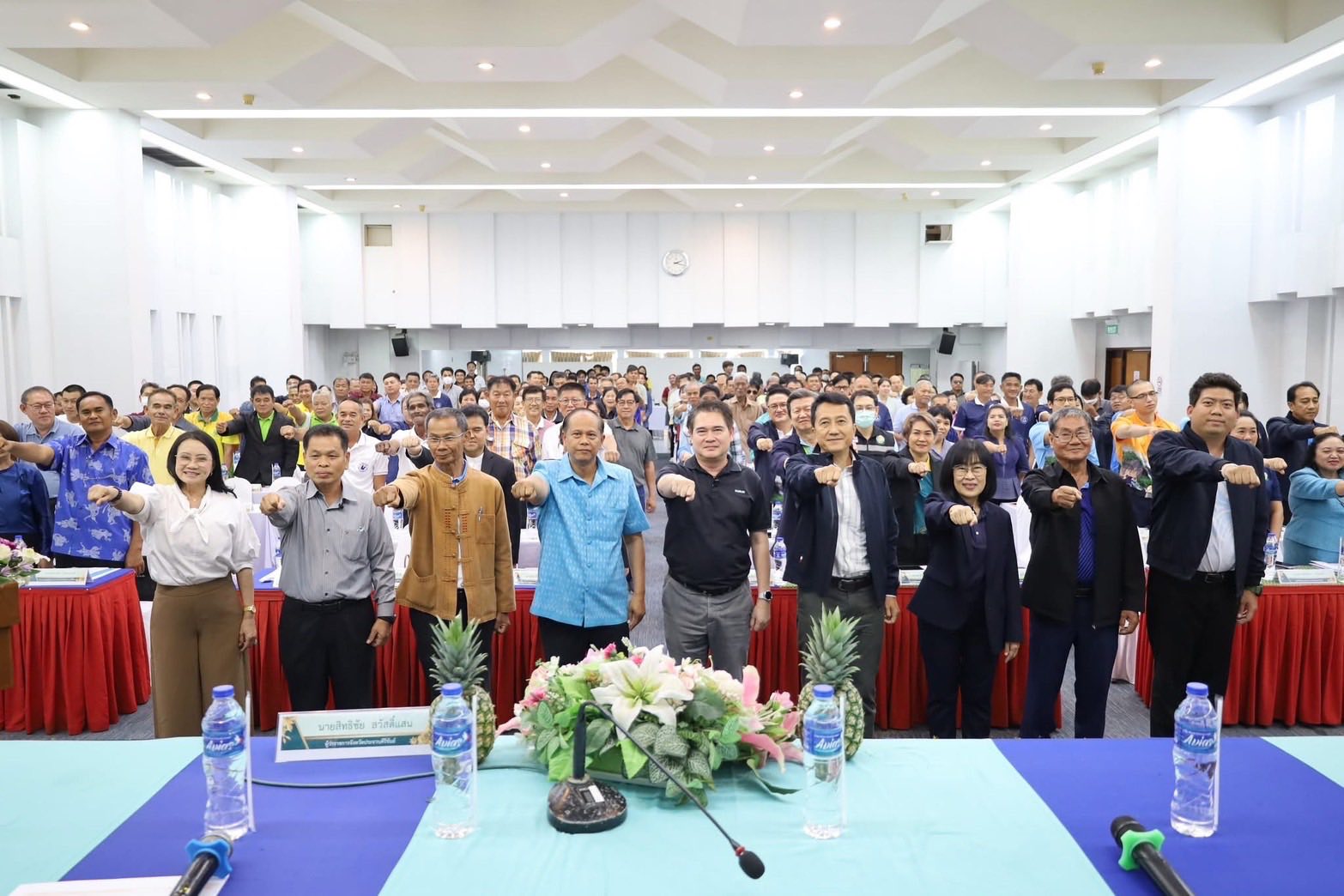 วันที่ 16 พฤษภาคม 2568 นางศันสนีย์ เกษตรสินสมบัติ เกษตรจังหวัดประจวบคีรีขันธ์ และเป็นผู้แทนกรมส่งเสริมการเกษตร เข้าร่วม และเป็นผู้ดำเนินการจัดเวทีเสวนา “สับปะรดไทยในวันที่โลกเปลี่ยน” ระดมความคิดเห็นผู้เกี่ยวข้องในอุตสาหกรรมสับปะรดไทย กำหนดทิศทางการพัฒนา รับมือสถานการณ์การค้าโลกที่เปลี่ยนแปลง โดยมีนายสิทธิชัย สวัสดิ์แสน ผู้ว่าราชการจังหวัดประจวบคีรีขันธ์ เป็นประธานพิธีเปิดการเสวนา พร้อมด้วย นายสินาทร โอ่เอี่ยม รองผู้ว่าราชการจังหวัดฯ นายสราวุธ ลิ้มอรุณรักษ์ นายกองค์การบริหารส่วนจังหวัดฯ สมาคมชาวไร่สับปะรดไทย กลุ่มผู้ปลูกสับปะรดจังหวัดประจวบคีรีขันธ์ ส่วนราชการ กลุ่มเกษตรกรผู้ปลูกสับปะรดในพื้นที่ จ.ประจวบฯ และจังหวัดอื่นๆ 7 จังหวัด ผู้แทนสมาคมชาวไร่สับปะรดไทย สมาคมอุตสาหกรรมสับปะรดไทย และผู้เกี่ยวข้องเข้าร่วมเวทีเสวนาฯ ในประเด็น 👉 ทิศทางการผลิตสับปะรดในอนาคต 👉 ทิศทางการตลาดของสับปะรดไทยในปัจจุบันและอนาคต 👉 การเชื่อมโยงความร่วมมือระหว่างผู้ประกอบการโรงงานอุตสาหกรรมแปรรูปสับปะรดกับเกษตรกร 👉 แนวทางการพัฒนาเพื่อเพิ่มผลิตภาพการผลิตสับปะรด 👉 เปิดเวทีรับฟังข้อเสนอแนะจากผู้เข้าร่วมเสวนา