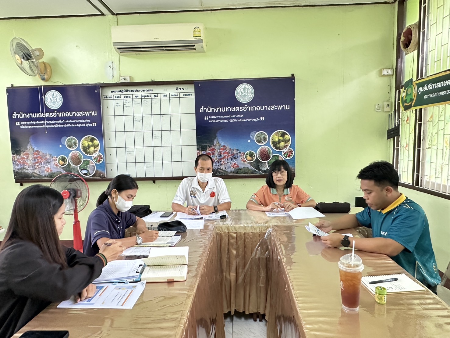 #เกษตรประจวบฯเกษตรประจวบฯ ติดตามการดำเนินงานโครงการป้องกันกำจัดศัตรูมะพร้าวโดยวิธีผสมผสาน 🗓️วันที่ 3 กรกฎาคม 2568 นางศันสนีย์ เกษตรสินสมบัติ เกษตรจังหวัดประจวบคีรีขันธ์ พร้อมด้วยนายโกสินทร์ สุนทรโสภาหัวหน้ากลุ่มอารักขาพืช ร่วมกับเกษตรอำเภอบางสะพาน เกษตรอำเภอทับสะแก และเจ้าหน้าที่สำนักงานเกษตรอำเภอ ร่วมหารือแนวทางการดำเนินงานโครงการป้องกันกำจัดศัตรูมะพร้าวโดยวิธีผสมผสาน เพื่อสนับสนุนเกษตรกรในพื้นที่การระบาดของหนอนหัวดำมะพร้าว ณ สำนักงานเกษตรอำเภอทับสะแก และสำนักงานเกษตรอำเภอบางสะพาน จังหวัดประจวบคีรีขันธ์