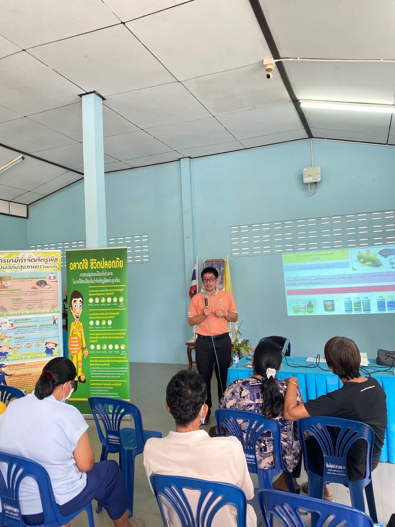 วันที่ 3 กรกฎาคม 2568 🌴🌴นางศันสนีย์ เกษตรสินสมบัติ เกษตรจังหวัดประจวบคีรีขันธ์ มอบหมายให้เจ้าหน้าที่กลุ่มอารักขาพืช ร่วมกับสำนักงานสาธารณสุขจังหวัดประจวบคีรีขันธ์ และสำนักงานเกษตรอำเภอทับสะแก บรรยายในหัวข้อ “ทางเลือกเพื่อลดการใช้สารเคมีกำจัดศัตรูพืช” ตามโครงการอบรมสร้างความตระหนักเรื่องการใช้สารกำจัดศัตรูพืชในกลุ่มเกษตรกร และการตรวจคัดกรองความเสี่ยงของพิษจากสารกำจัดศัตรูพืช ระดับจังหวัดประจวบคีรีขันธ์ เพื่อให้กลุ่มเกษตรกรในพื้นที่มีความรู้ ความเข้าใจเกี่ยวกับโรคพิษจากสารกำจัดศัตรูพืช ได้รับการคัดกรองความเสี่ยง และได้รับการติดตามเพื่อปรับเปลี่ยนพฤติกรรมอย่างต่อเนื่อง 🏡ณ ศาลาหมู่บ้าน หมู่ที่ 3 บ้านทุ่งยาว ตำบลห้วยยาง อำเภอทับสะแก จังหวัดประจวบคีรีขันธ์