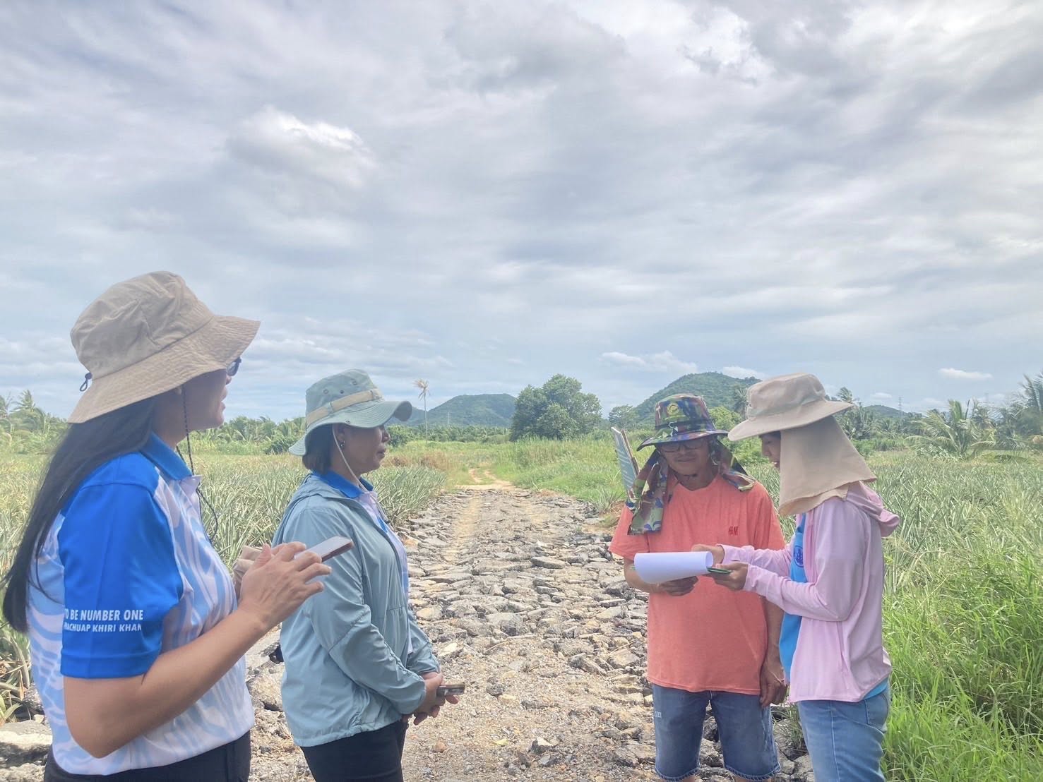 ติดตามและประเมินผลโครงการระบบส่งเสริมเกษตรแบบแปลงใหญ่เพื่อปรับเพิ่มสภาพการผลิต🍍✨ วันที่ 4 กรกฎาคม 2568 นางศันสนีย์ เกษตรสินสมบัติ เกษตรจังหวัดประจวบคีรีขันธ์ มอบหมายให้นางสาวเพียงใจ น้อยดี หัวหน้ากลุ่มส่งเสริมและพัฒนาการผลิต พร้อมด้วยเจ้าหน้าที่และสำนักงานเกษตรอำเภอกุยบุรี ติดตามและให้คำแนะนำกลุ่มแปลงใหญ่ผู้ปลูกสับปะรด อำเภอกุยบุรี และตอบข้อซักถามในประเด็นที่เกี่ยวข้อง รวมถึงเน้นย้ำเกษตรกรในการต่ออายุใบรับรองแหล่งผลิต GAP พืช และการดูแลแปลงสับปะรดในช่วงสภาวะอากาศเปลี่ยนแปลง ณ อำเภอกุยบุรี จังหวัดประจวบคีรีขันธ์