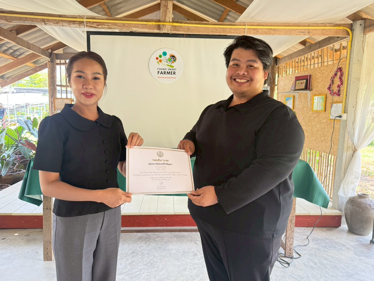 นางสาวเชาวนีฐ์ โคมแก้ว เกษตรจังหวัดประจวบคีรีขันธ์ เป็นประธานพิธีมอบประกาศนียบัตรแก่เกษตรกรรุ่นใหม่ที่ผ่านการอบรมหลักสูตรพัฒนาเกษตรกรรุ่นใหม่ให้เป็น Young Smart Farmer ประจำปี 2569