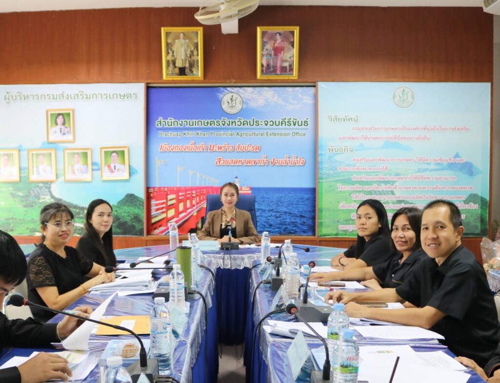วันที่ 27 กุมภาพันธ์ 2569 นางสาวเชาวนีฐ์ โคมแก้ว เกษตรจังหวัดประจวบคีรีขันธ์ เป็นประธานการประชุมประจำเดือนกุมภาพันธ์ 2569 ครั้งที่ 2/2569 โดยในช่วงเวลา 09.00 น. ประชุมสำนักงาน (Provincial Meeting :PM) พร้อมด้วยหัวหน้ากลุ่ม/ฝ่าย และเจ้าหน้าที่สำนักงานเกษตรจังหวัดประจวบคีรีขันธ์ ร่วมประชุมในประเด็นสำคัญ ดังนี้ ติดตามความคืบหน้าโครงการช่วยเหลือเกษตรกรผู้ปลูก สับปะรดโรงงาน (ปัตตาเวีย) โครงการสนับสนุนช่วยเหลือเกษตรกรผู้ปลูกข้าวนาปีและส่งเสริมการเพาะปลูกให้เหมาะสมกับศักยภาพพื้นที่ ข้อมูลคาดการณ์ผลผลิตพืชเศรษฐกิจ ปี 2569