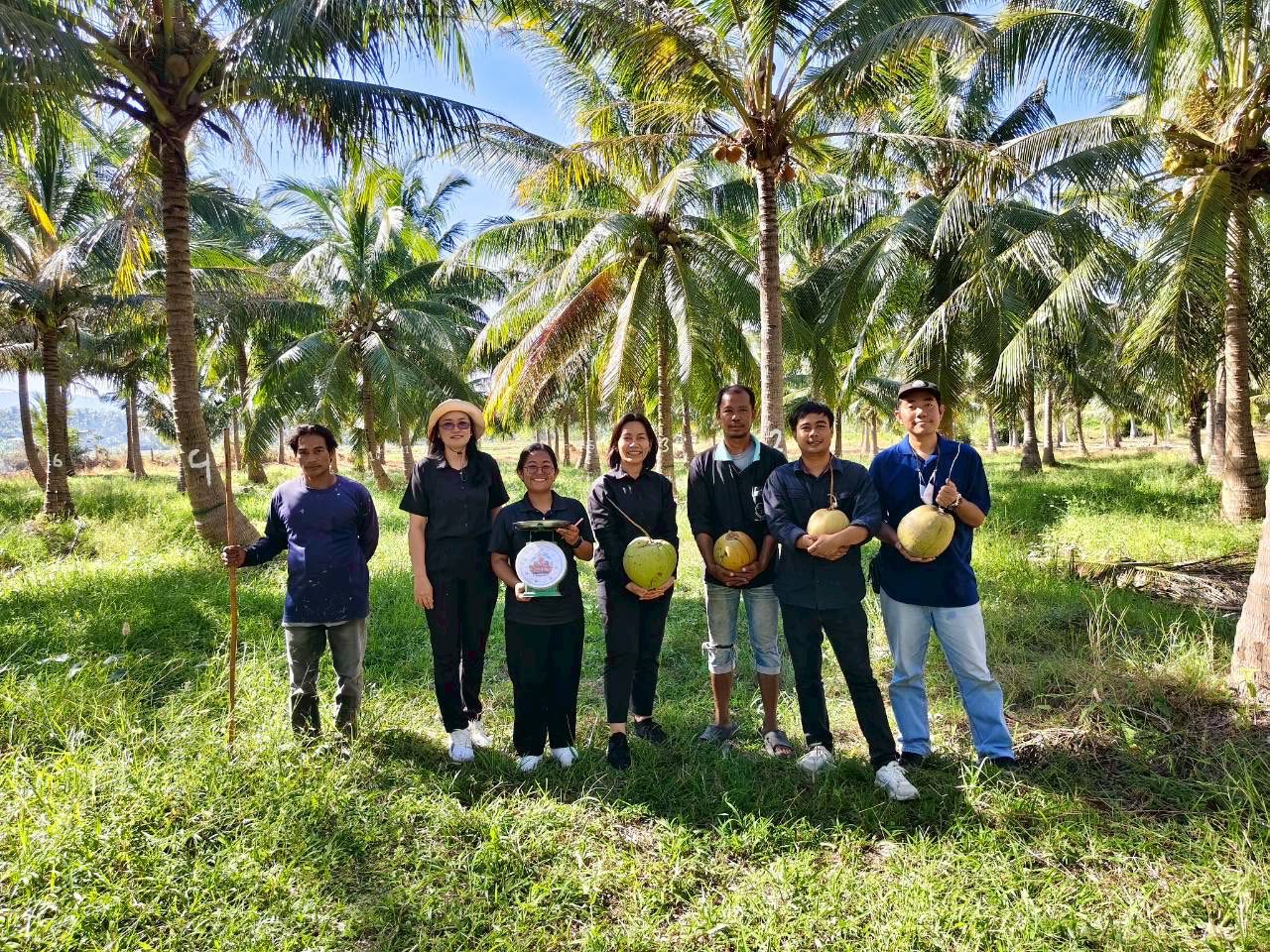 นางศันสนีย์ เกษตรสินสมบัติ เกษตรจังหวัดประจวบคีรีขันธ์ มอบหมาย นางสาวเพียงใจ น้อยดี หัวหน้ากลุ่มส่งเสริมและพัฒนาการผลิต พร้อมเจ้าหน้าที่ ร่วมกับสำนักงานเกษตรอำเภอทับสะแก ติดตามการดำเนินงานกิจกรรมทดสอบและถ่ายทอดเทคโนโลยีเพื่อเพิ่มผลิตภาพการผลิตสินค้าเกษตร (มะพร้าว)